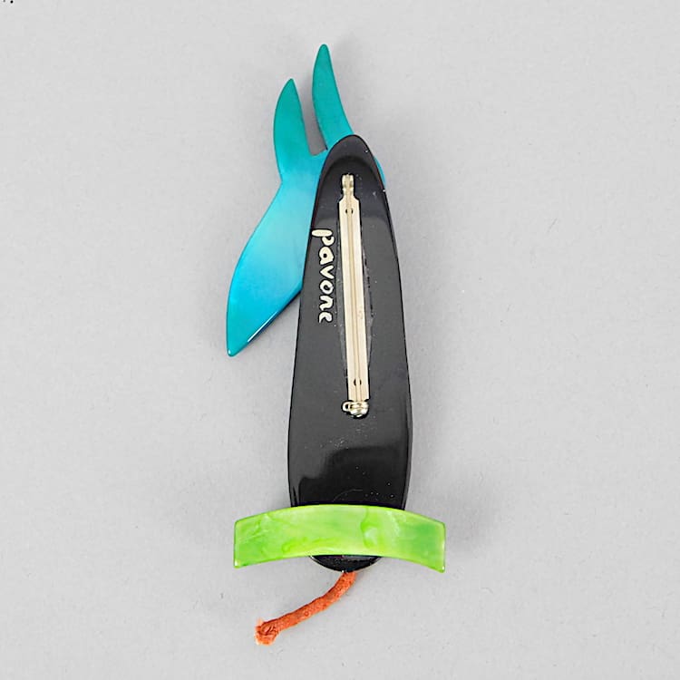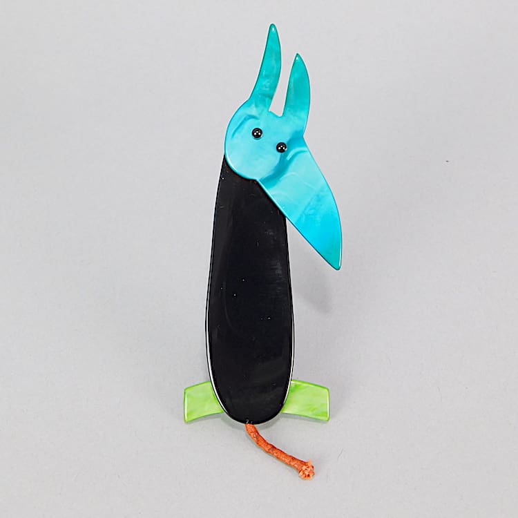 Large French vintage galalith hand made and painted early Wolf (Loup) brooch by Marie-Christine Pavone. Signed to the reverse and fitted with a roll safety clasp.