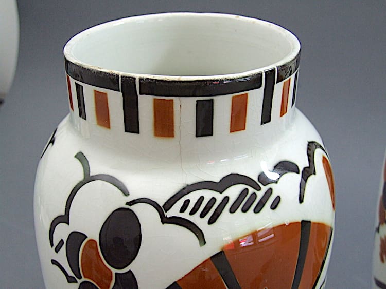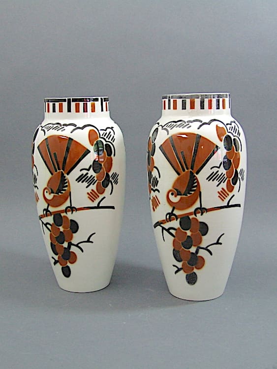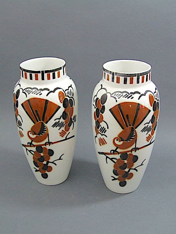 Large French ceramic bird vases – a matching pair. Marked to the base Ceylan K&B Lunneville.