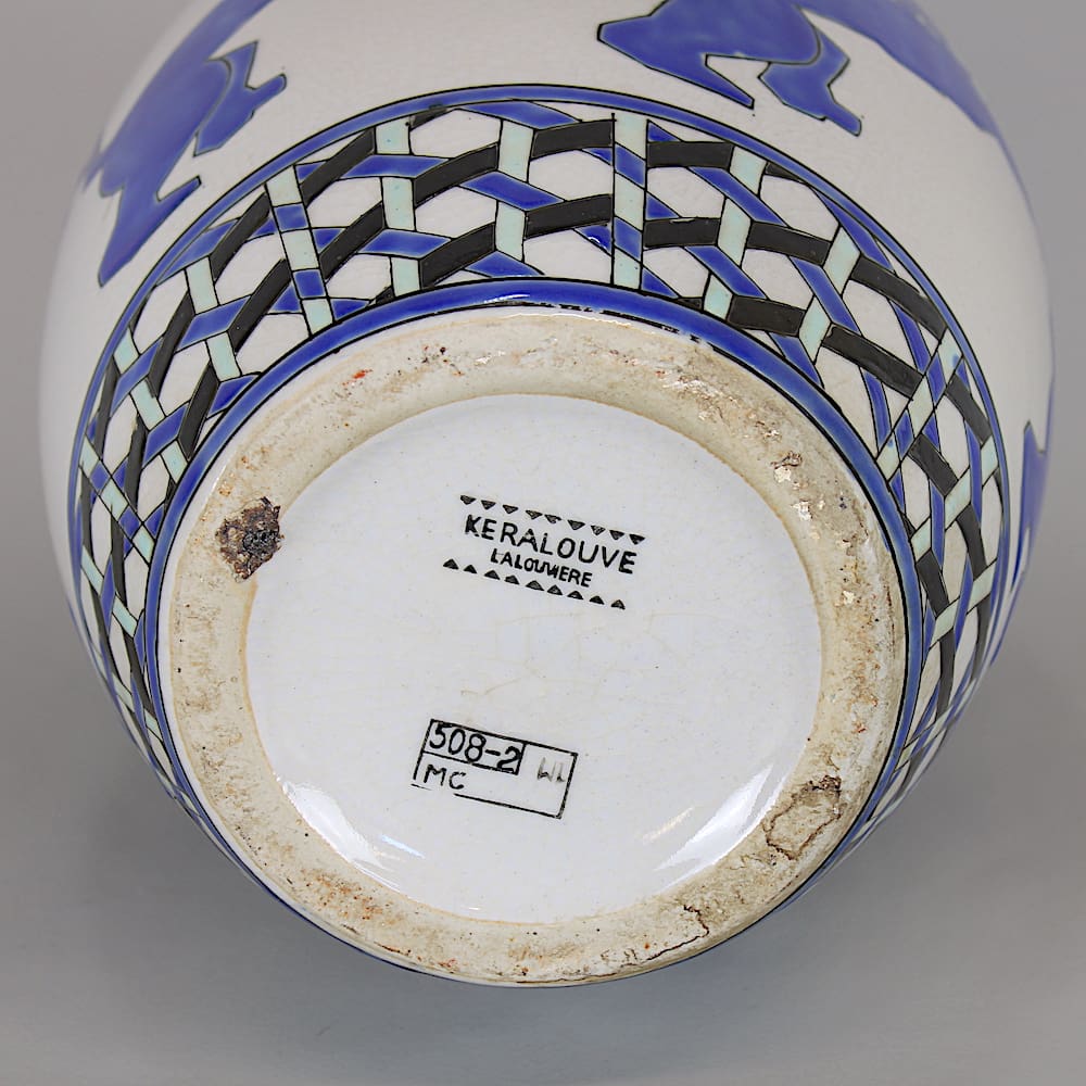 This is a contemporary vase similar to the Belgian Boch Keramis originals of the 1930’s.