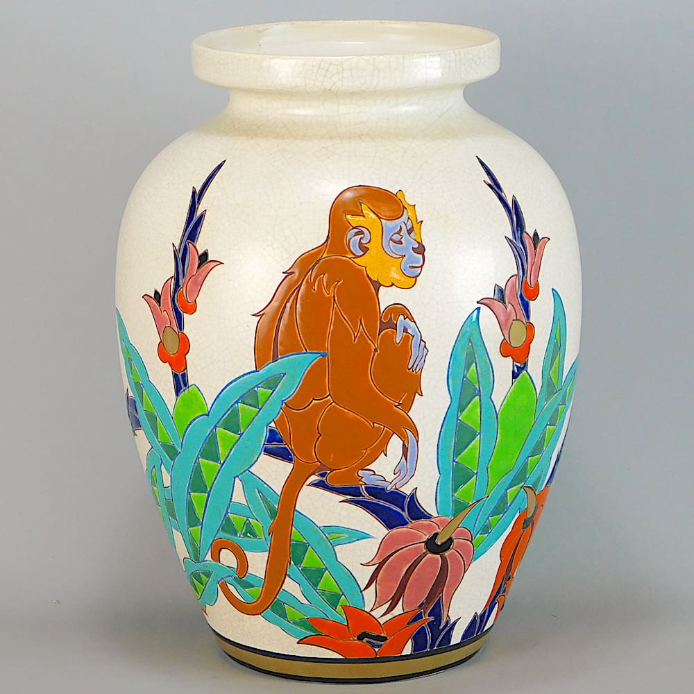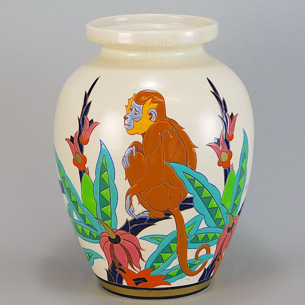 French art deco hand painted monkey vases produced by the Orchies company.