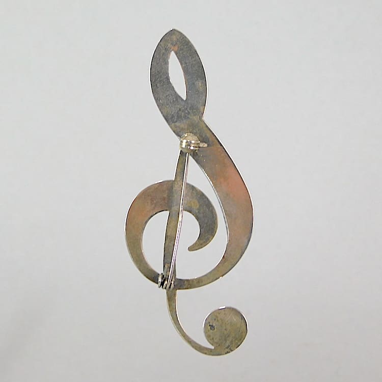 Large vintage silver plated musical note brooch. Fitted with a roll safety clasp.