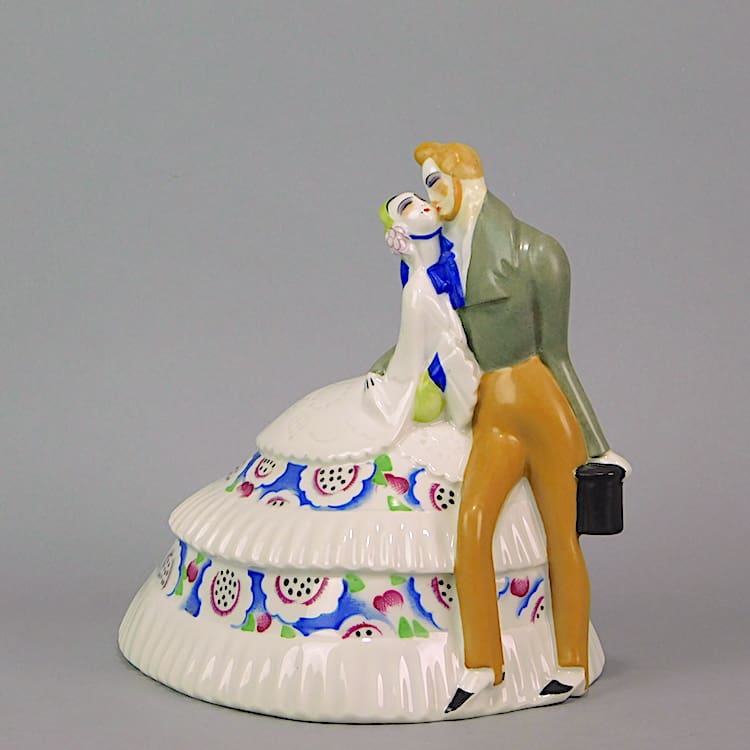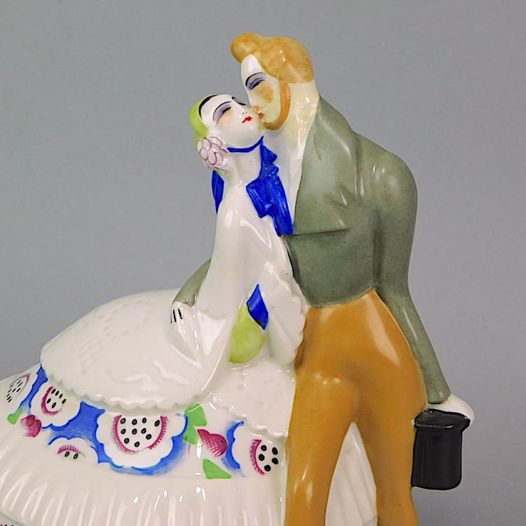 Beautiful, rare and large hand painted French ceramic Lovers night light stamped La Matrise under the base. Executed by Atelier de la Maitrise and I believe retailed by Gallerie Lafayette in 1926. It is not currently fitted with a wire or bulb holder.
