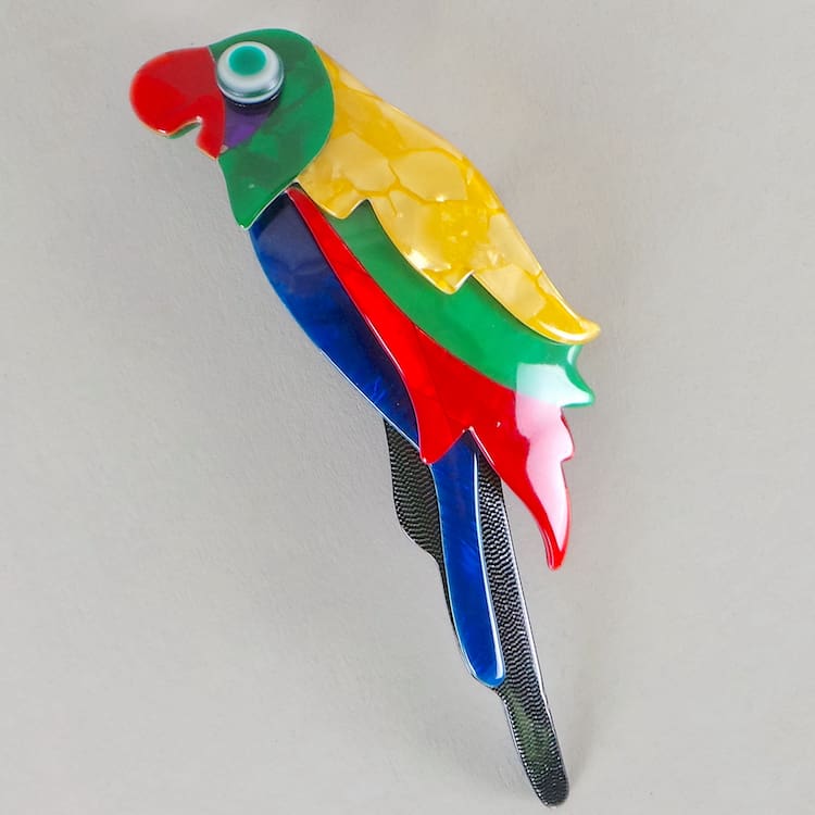 This is the large parrot brooch by Lea Stein, signed on the V safety clasp.