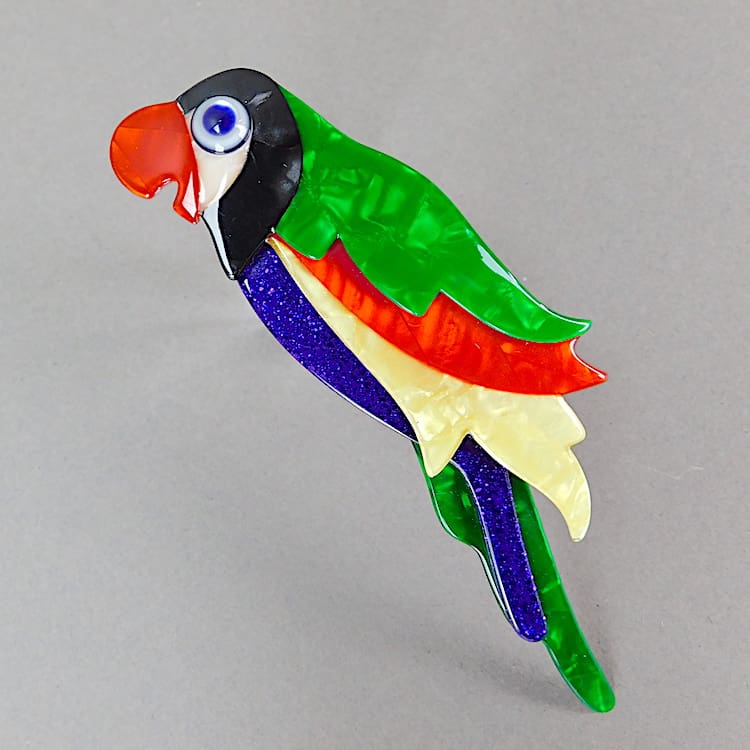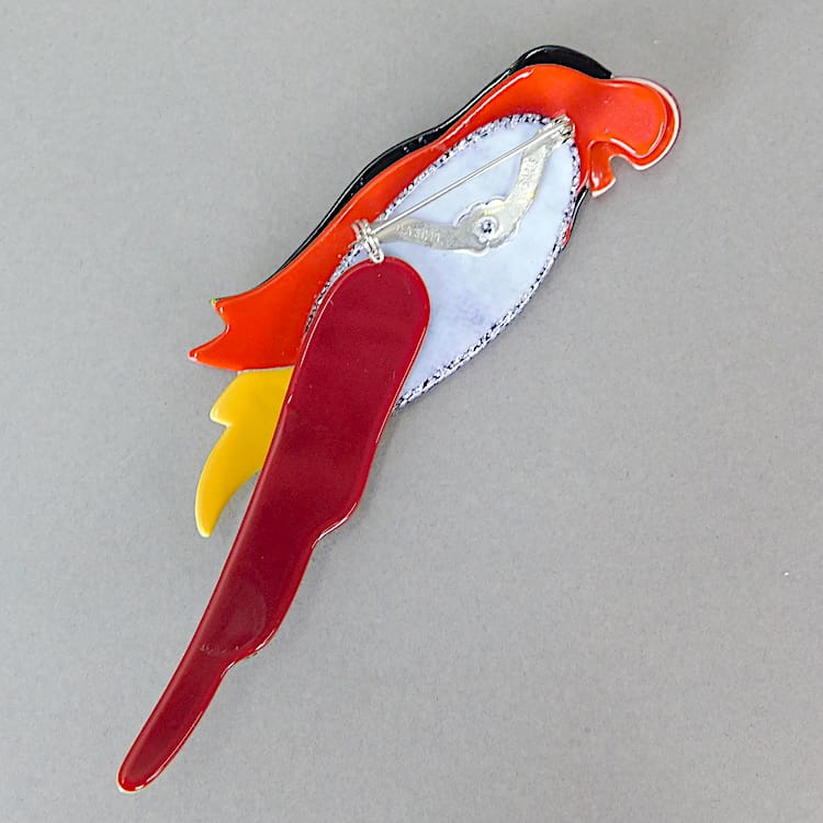 This is the large parrot brooch by Lea Stein, signed on the V safety clasp.
