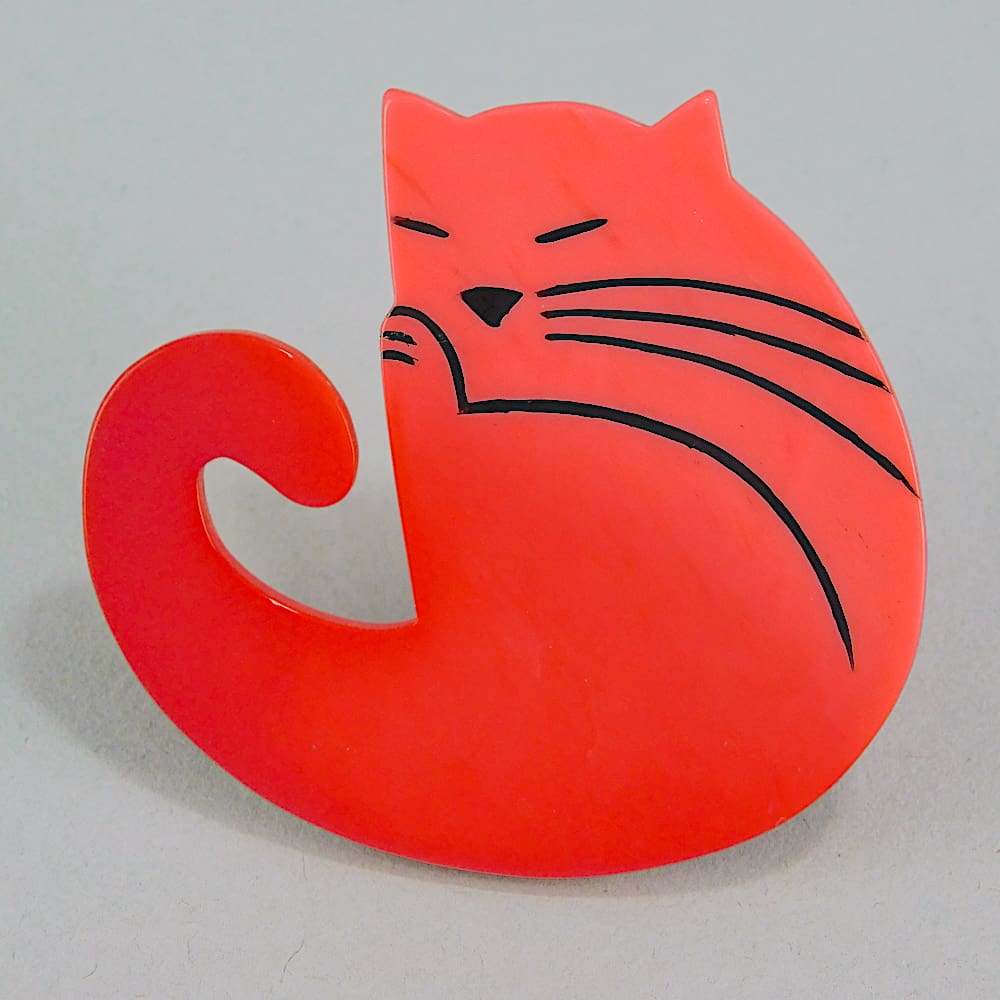 Hand painted French cat brooch by Marie-Christine Pavone.