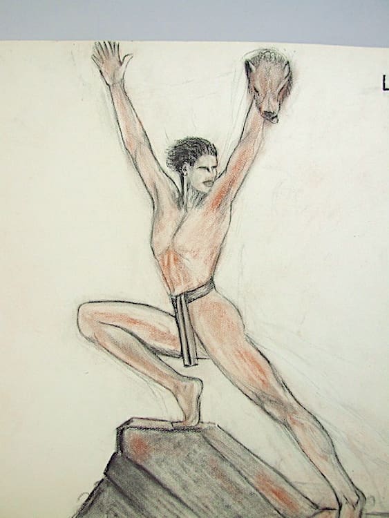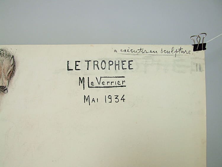 Le Trophee – an original pastel and charcoal drawing by Max LeVerrier. A subject design for a statue that he never produced. This is such a rare find, the Le Verrier family are famous for the production of art deco statues. It has come from the archives of the Le Verrier atelier and family. Signed to the top corner and titled Le Trophee and dated May 1934.