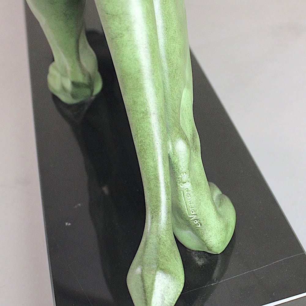 Green patinated Art Deco cubist lion by Max Le Verrier.