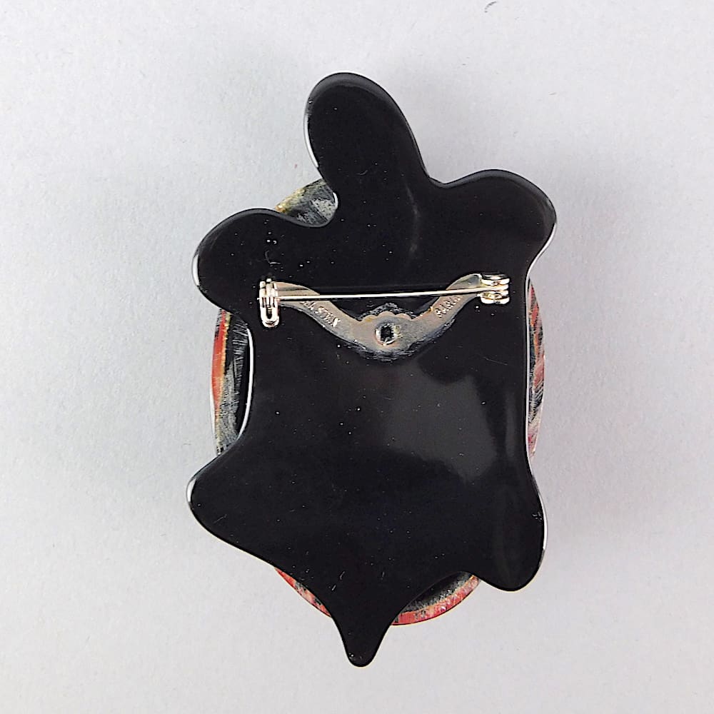 Large Lea Stein tortoise brooch. Signed on the safety V clasp.