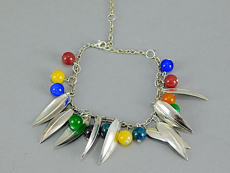 American art deco metal leaf and phenolic berry necklace and matching bracelet set.