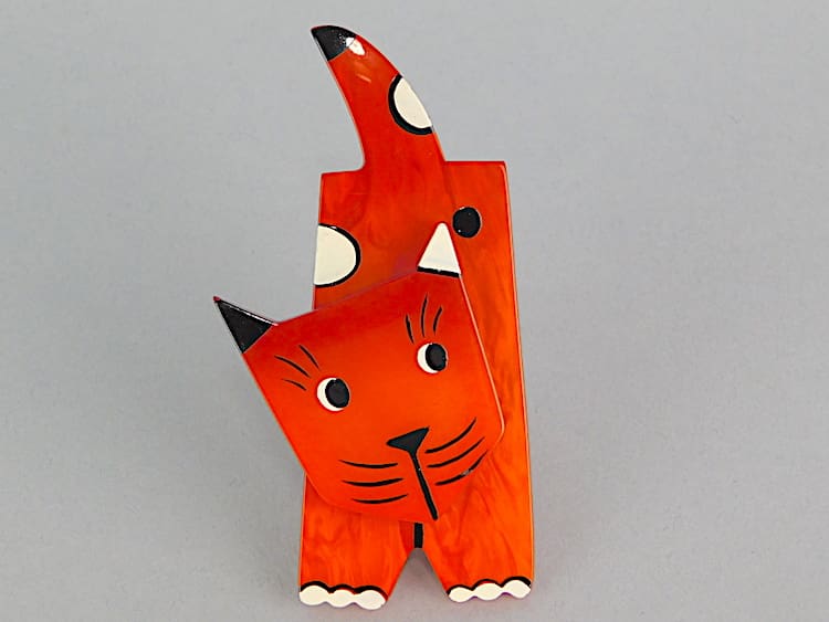 French art deco hand painted vintage galalith cat brooch. His name is Lego and it is signed Pavone to the back and fitted with a roll safety clasp.