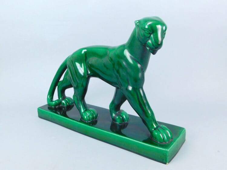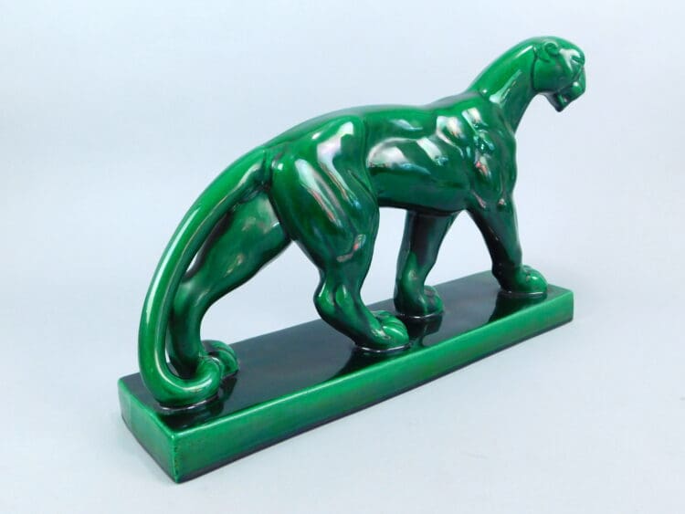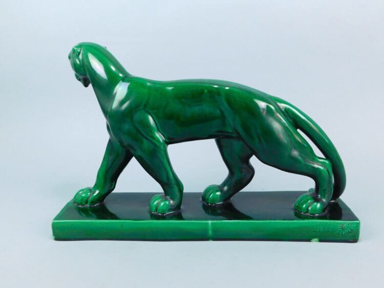 French green ceramic panther by Lemanceau.