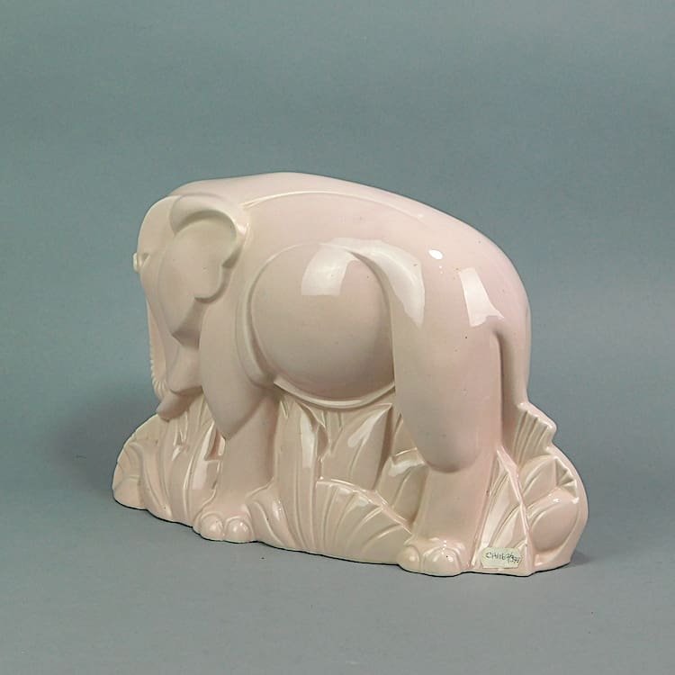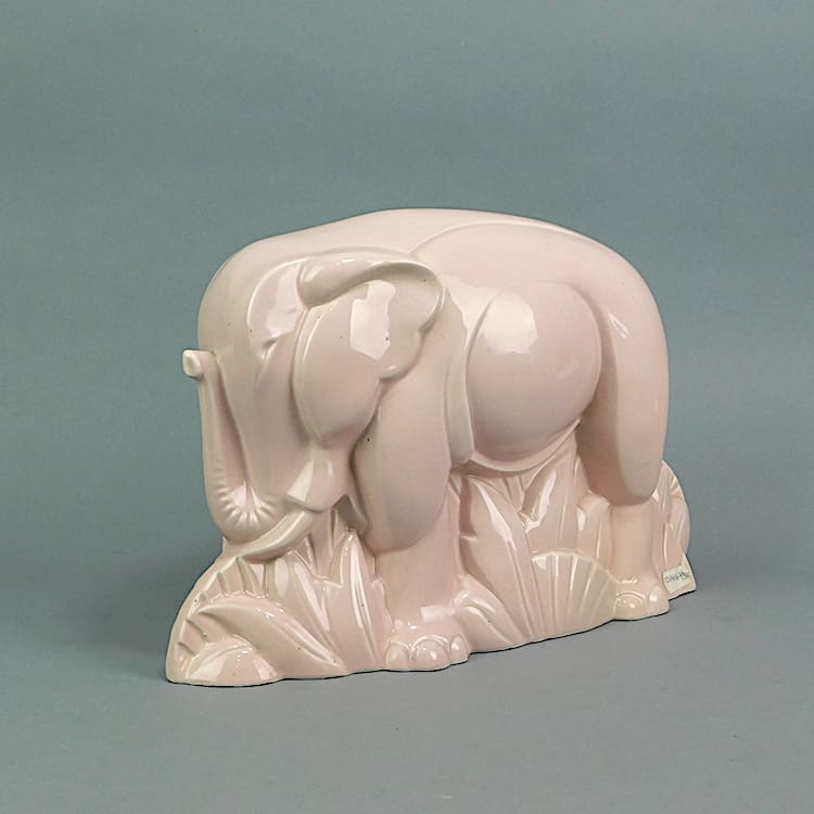 Pink crackle glaze elephant by the French company Lemanceau.