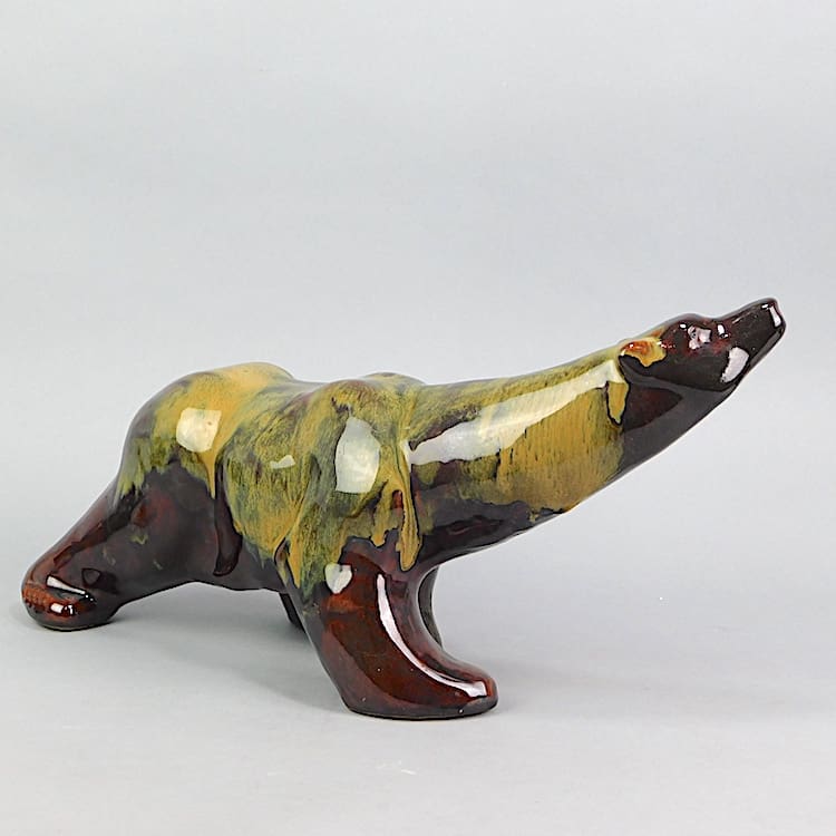 French drip glaze ceramic polar bear – designed by Lemenceau (unsigned) and very unusual.