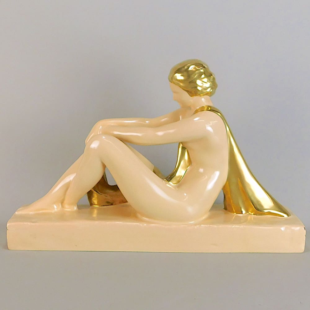 French creams crackle glaze nude lady with Gold scarf and hair detail.