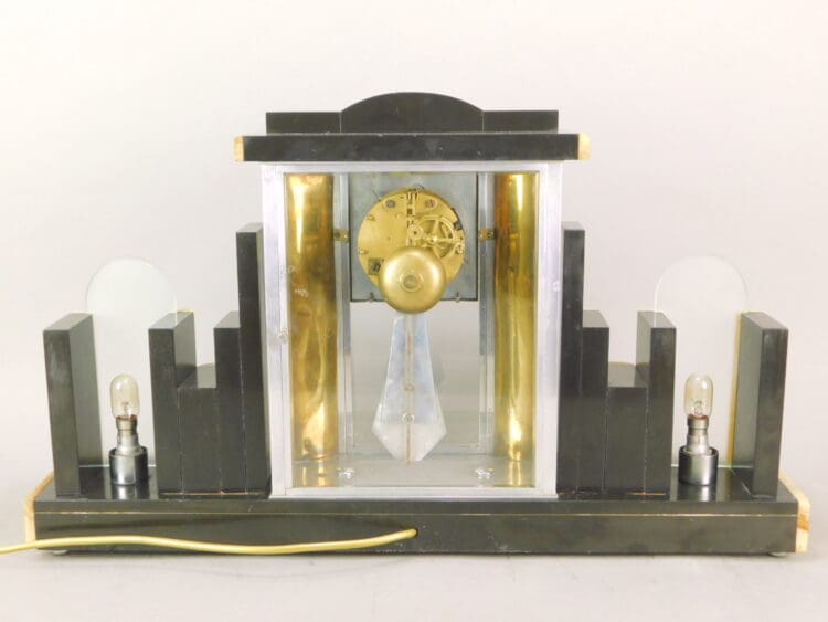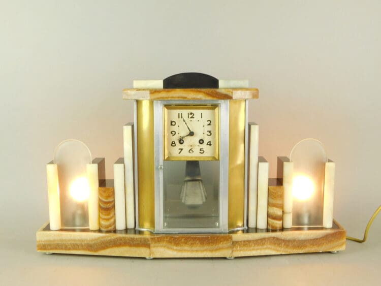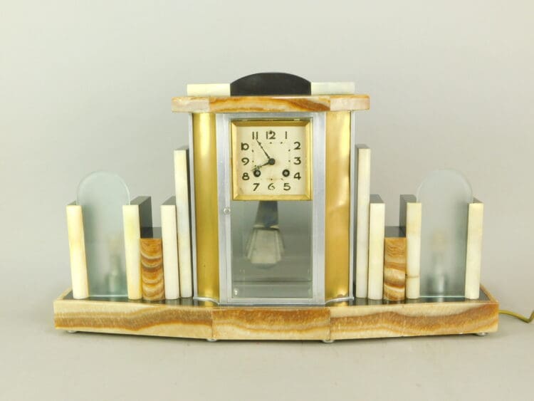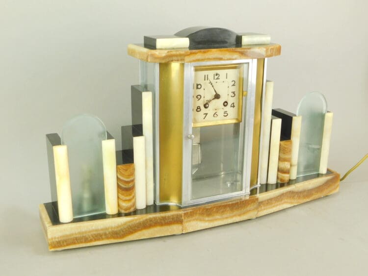 Belgium brown and cream marble, with light-up end sections and 4 glass sides and metal panelled side strips.