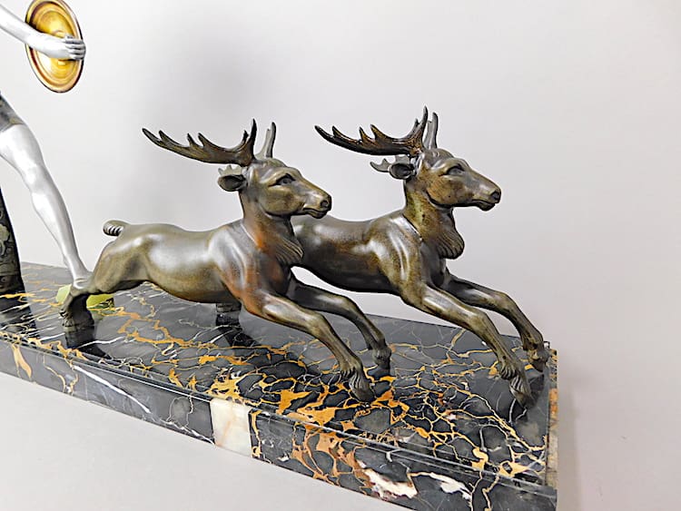 An unusual piece with a pair of spelter reindeer instead of the usual deer.