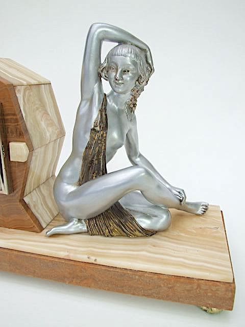 A two tone unsigned Limousin French spelter sitting lady clock. Movement is signed Tremolieres Troyes.