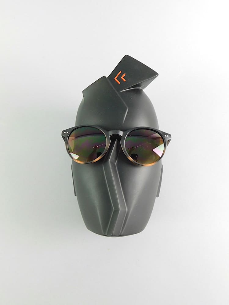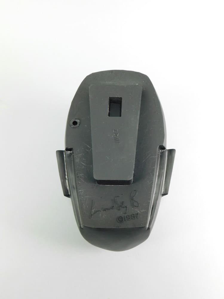 Another rare art deco style neoplastic wall mask with a zigzag nose. Originally supplied with a metal coat hanger type stand (not available). Made to hold a pair of glasses as she has a ridge on her nose. Can also be hung on the wall. Signed to the back and dated 1987 made just before she closed up the business.