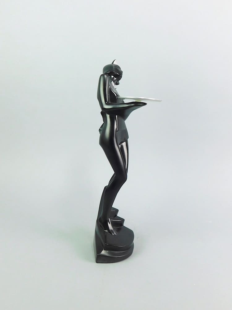 Satin black finish with silver bow detail and aluminium tray. This piece has come direct from Lindsey Bs old stock when her workshop was recently closed down.