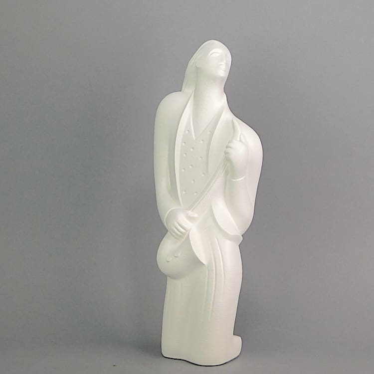 A rare art deco style rock band member saxophone player. I understand from Lindsey B he was modelled on Tim Cappello, also credited as Timmy Cappello, who is an American multi-instrumentalist, composer and vocalist. He is primarily known for his saxophone work supporting Tina Turner in the 1980s and 90s. Signed and dated 1990.