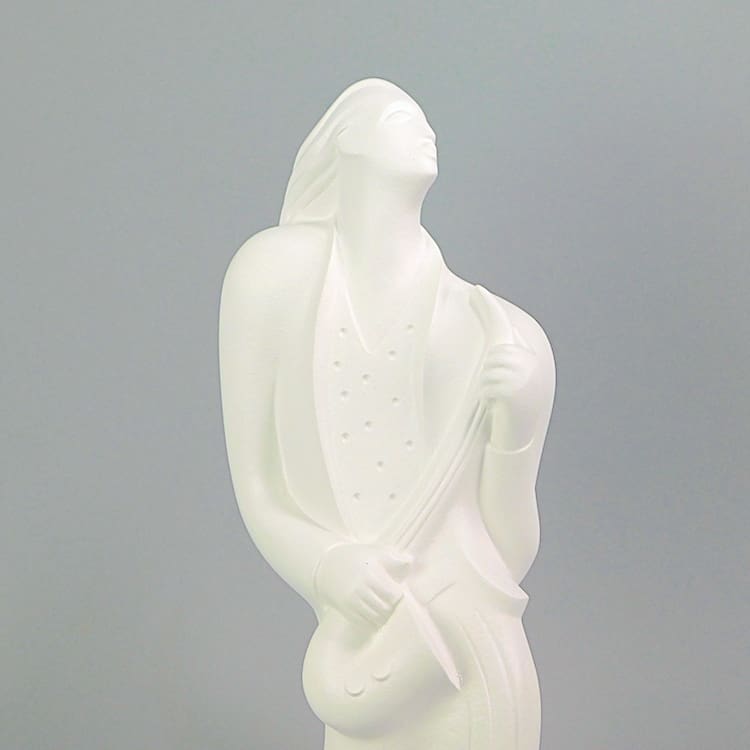 A rare art deco style rock band member saxophone player. I understand from Lindsey B he was modelled on Tim Cappello, also credited as Timmy Cappello, who is an American multi-instrumentalist, composer and vocalist. He is primarily known for his saxophone work supporting Tina Turner in the 1980s and 90s. Signed and dated 1990.