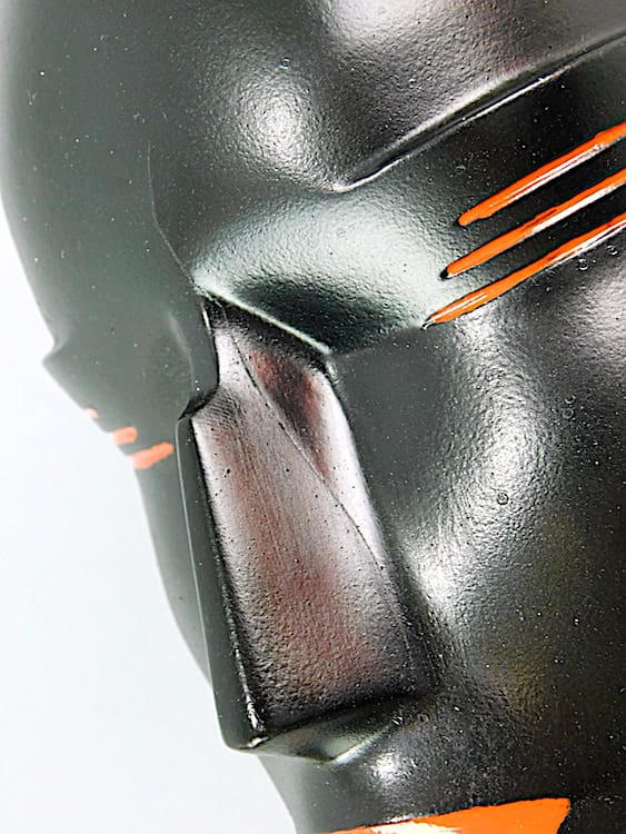 Art deco black neoplastic oriental lady wall mask with chop sticks in her hair. Originally would have been supplied with a metal coat hanger type stand (not supplied). Can also be hung on the wall. Signed to the back and dated 1987 made just before she closed up the business. Purchased directly from Lindsey B. This is part of a collection of old stock and original unique prototypes from her workshop.
