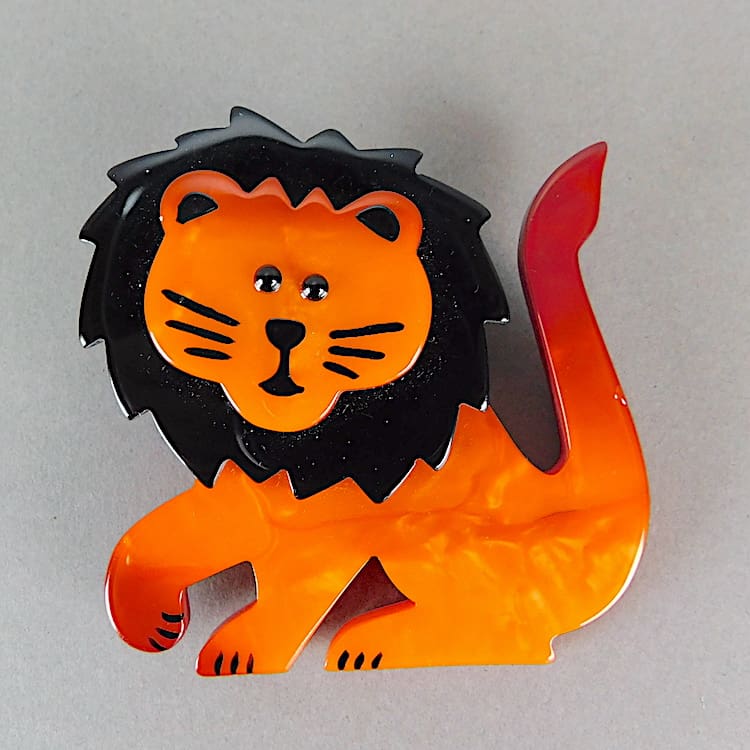 French hand made and signed red lion brooch by Marie-Christine Pavone.