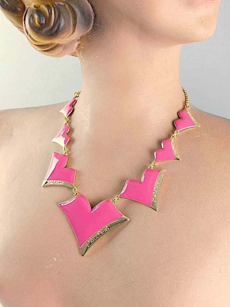 Pink enamel lips necklace, each panel signed Zandra Rhodes. I have matching necklaces, earrings and brooches to this piece.