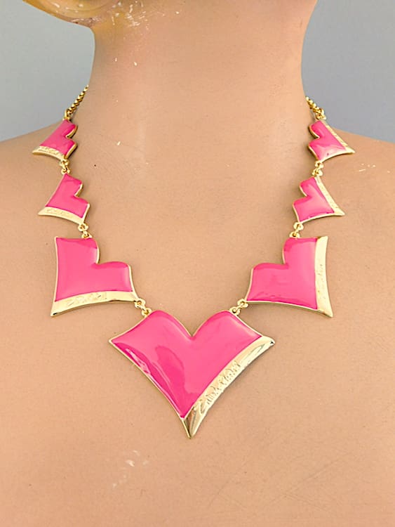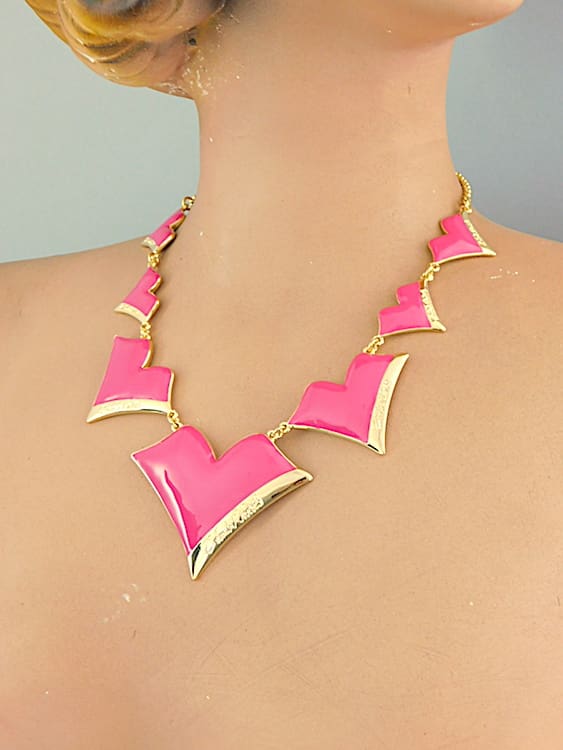 Pink enamel lips necklace, each panel signed Zandra Rhodes. I have matching necklaces, earrings and brooches to this piece.