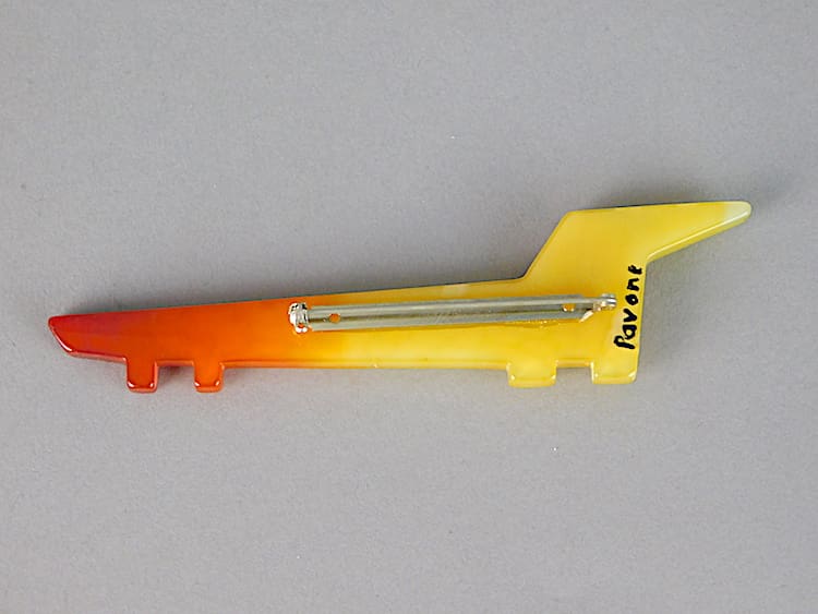 French vintage galalith in yellow changing to orange body with a red ear.
