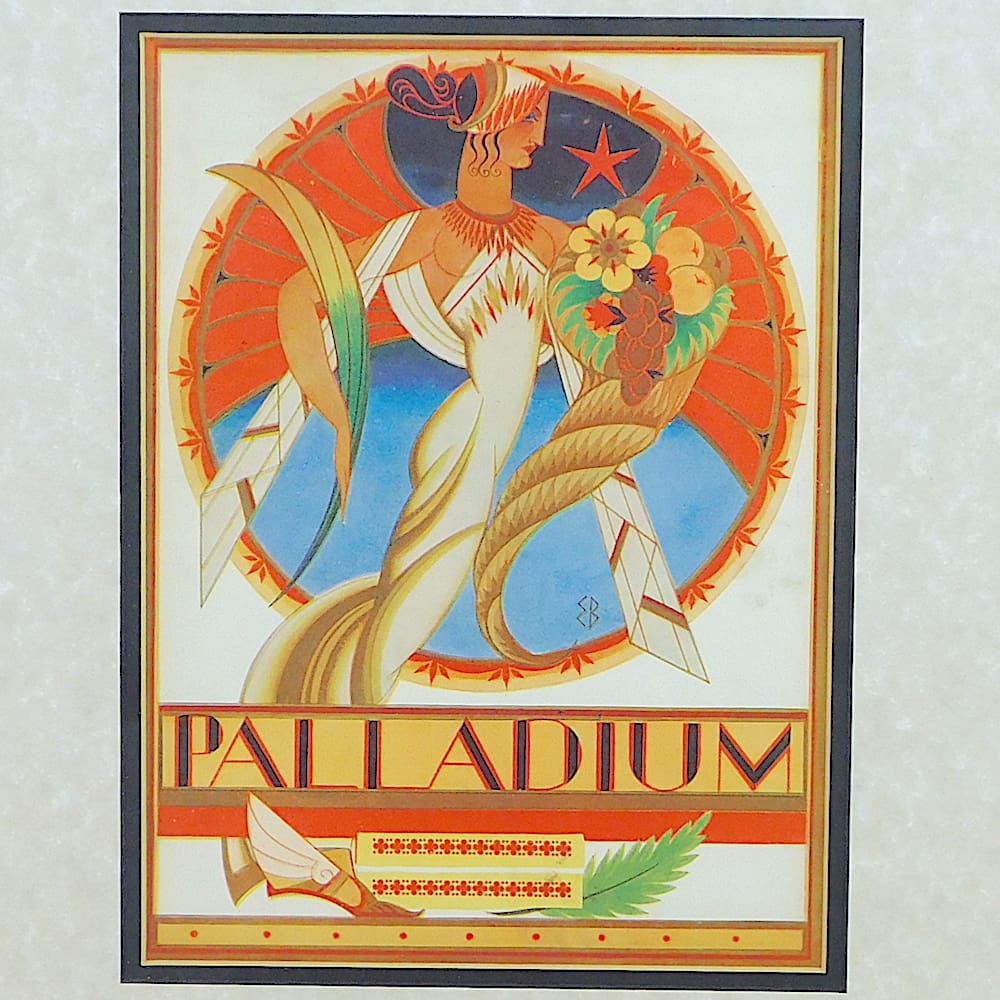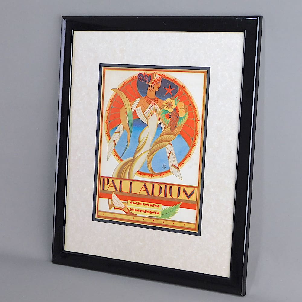 A print of an art deco poster for the London Palladium.