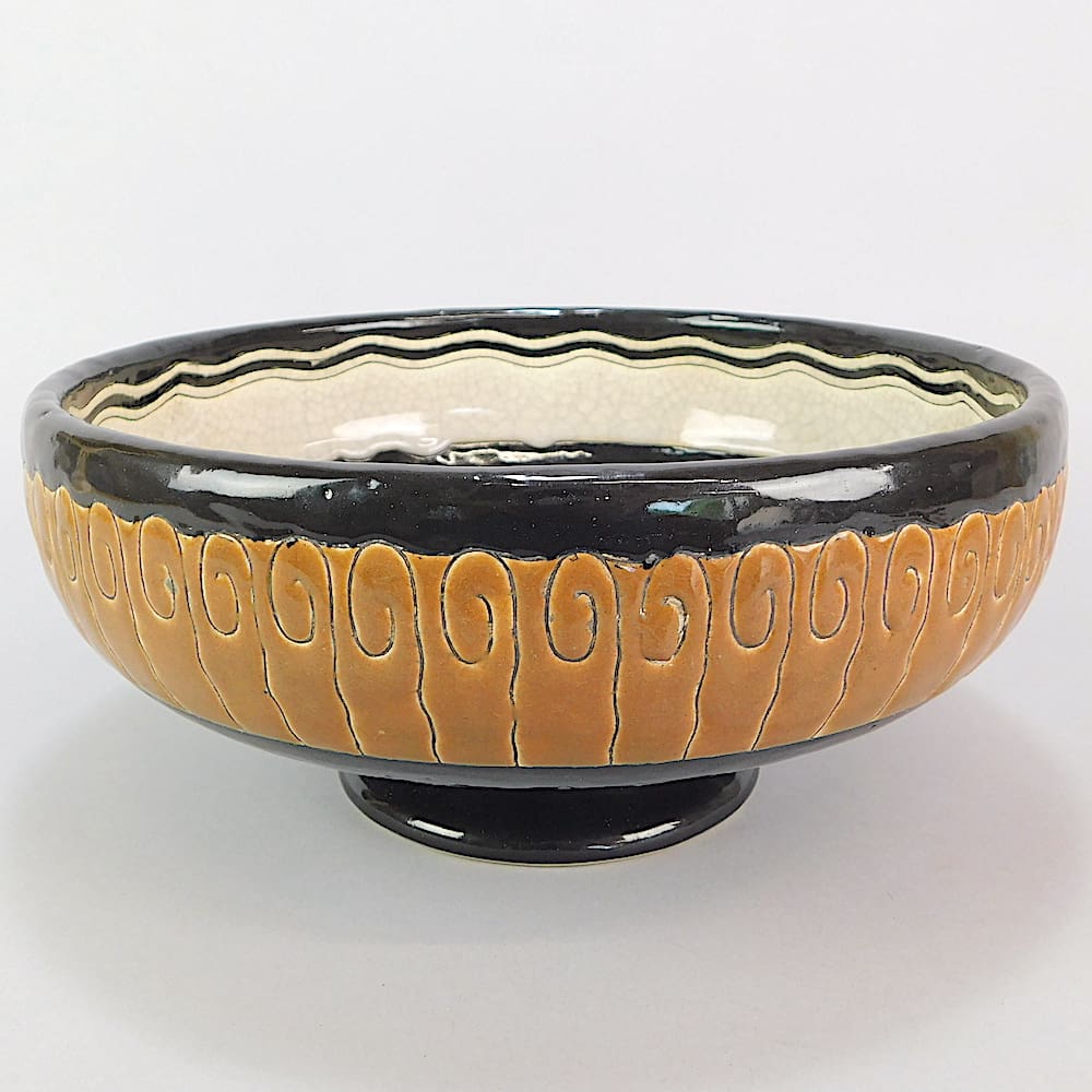 French Atelier Primavera Longwy art deco footed bowl.