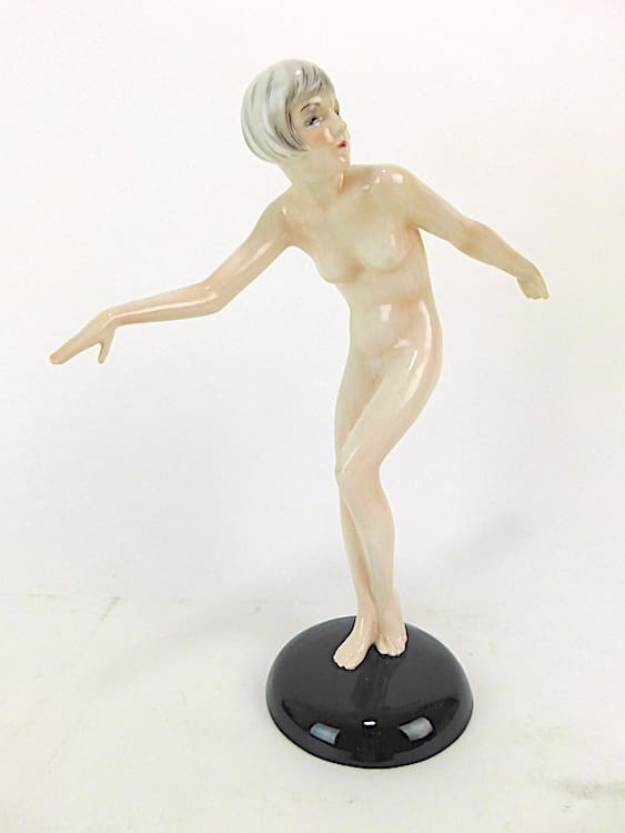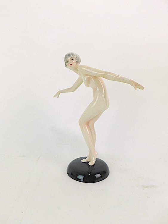 Austrian art deco ceramic nude made by Goldscheider and designed by Lorenzl. Signed under the base Goldscheider Wien and signed Lorenzl, stamped with its model number – 5302/489. Beautifully hand painted.