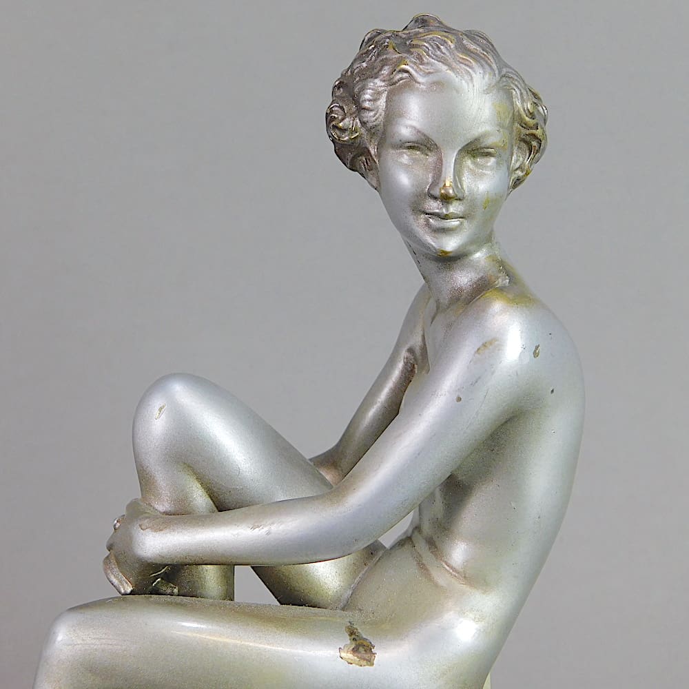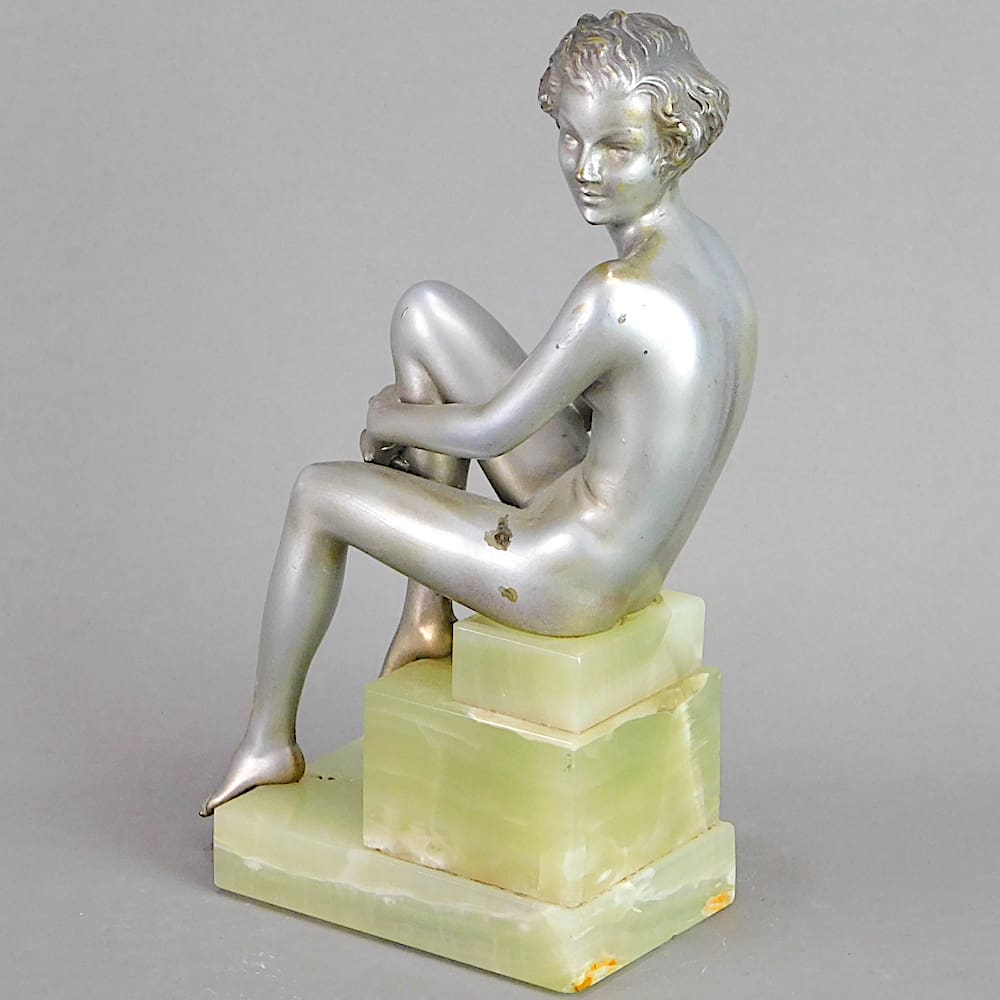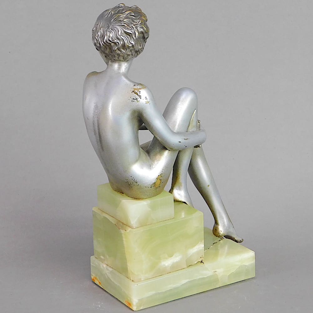 Bronze art deco female nude mounted on a stepped onyx base.