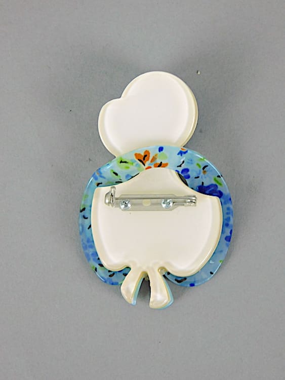 French phenolic lucite flapper brooch. Fitted with a roll safety clasp.