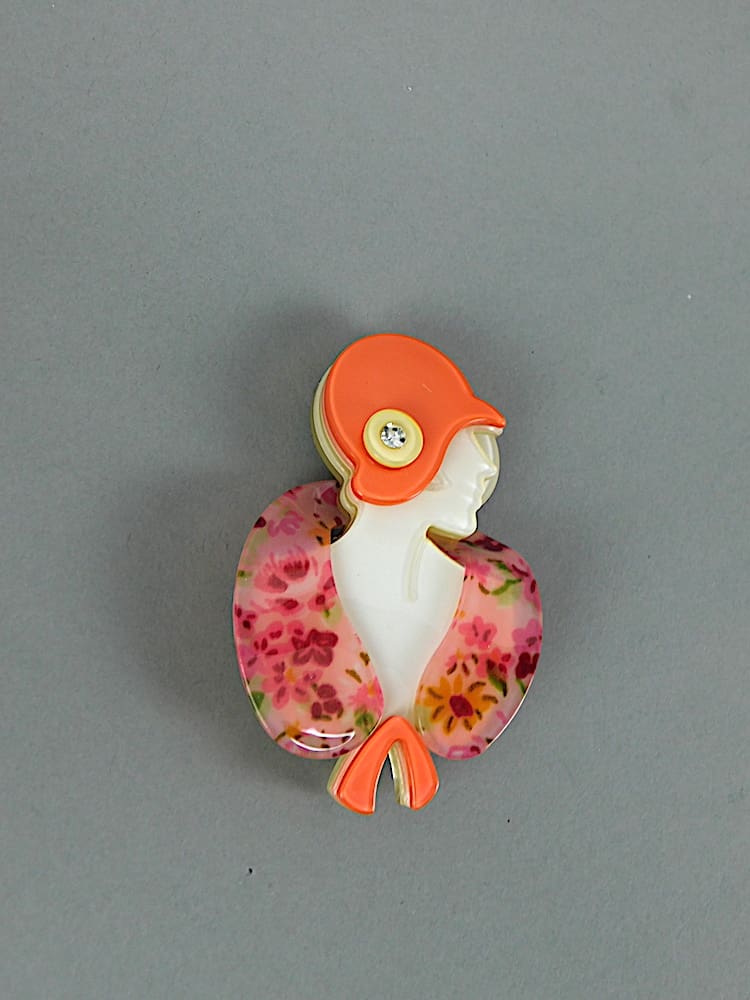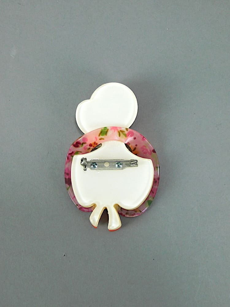 French phenolic lucite flapper brooch. Fitted with a roll safety clasp.
