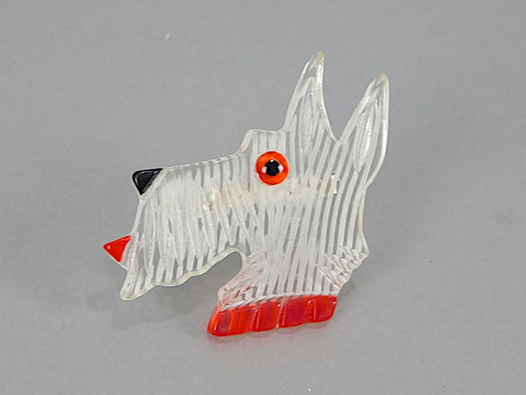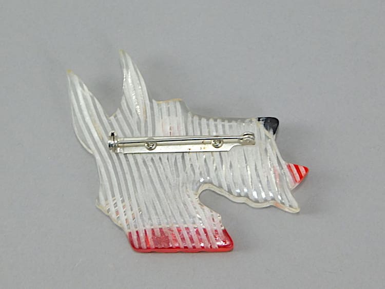 American vintage celluloid dogs head brooch and fitted with a roll safety clasp.