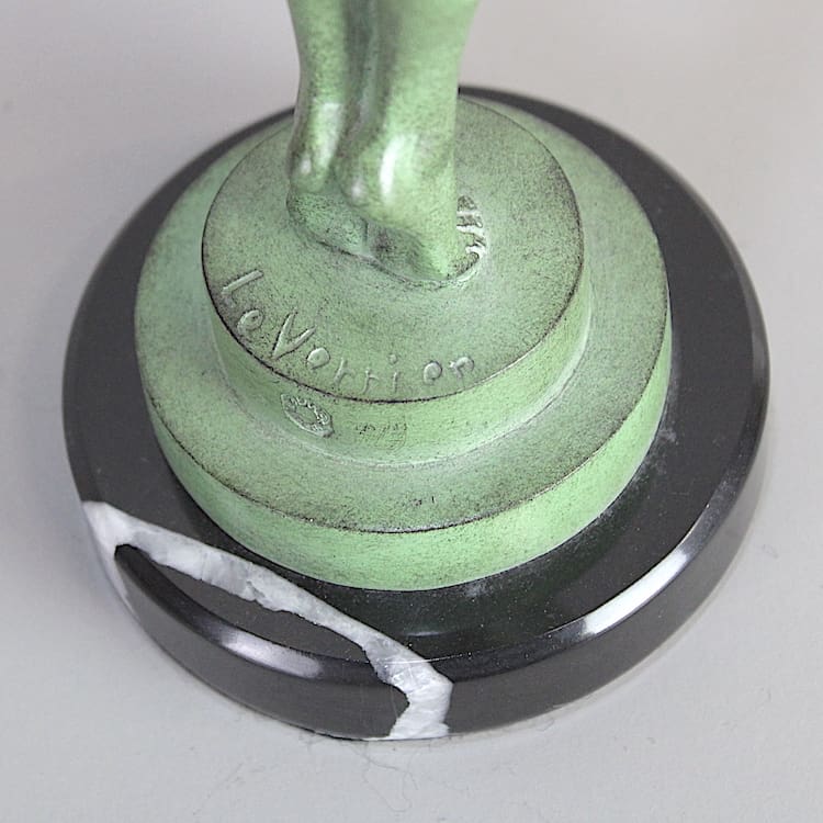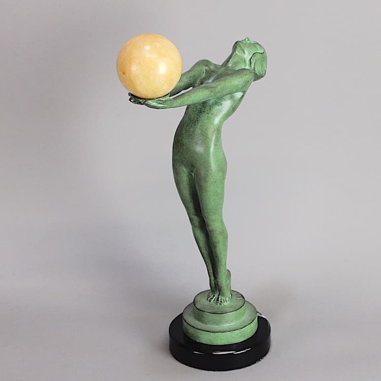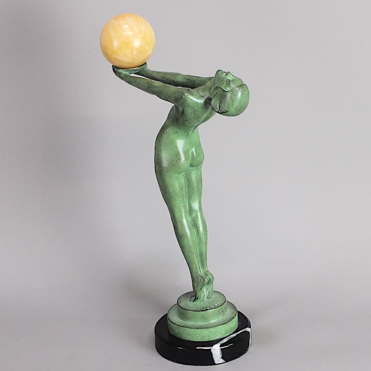This art deco spelter statue is the smallest version of Lueur by Max Le Verrier.