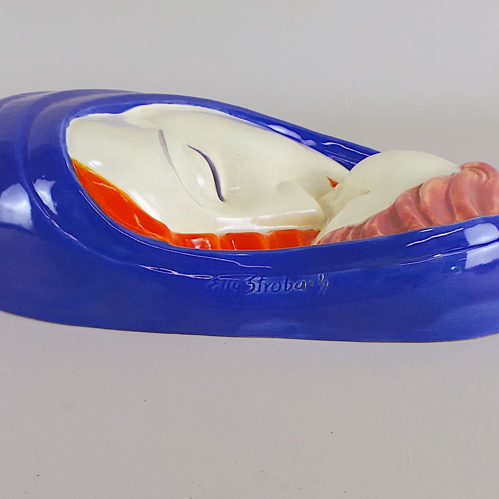 I believe made by Royal Dux it is signed to the side Elly Strobach – who worked with Royal Dux.