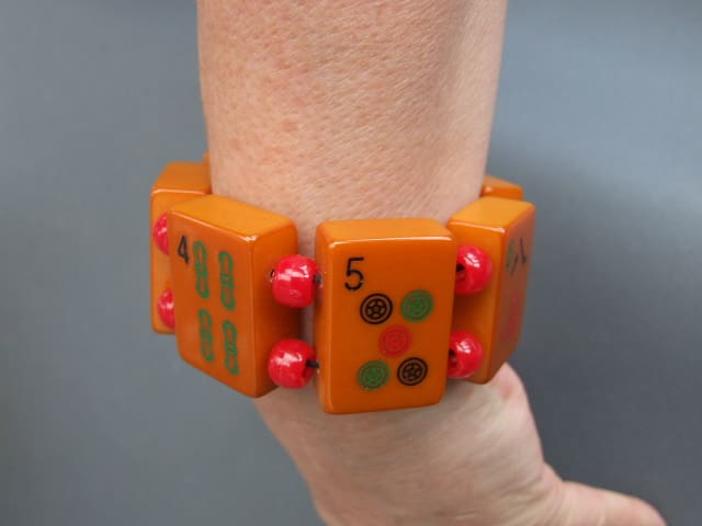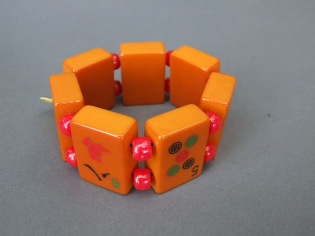 Elasticated celluloid Mahjong panel bracelet, made up of 1920’s Mahjong panels.