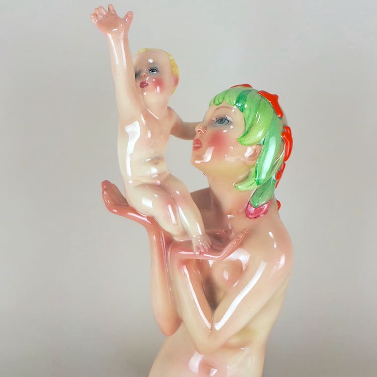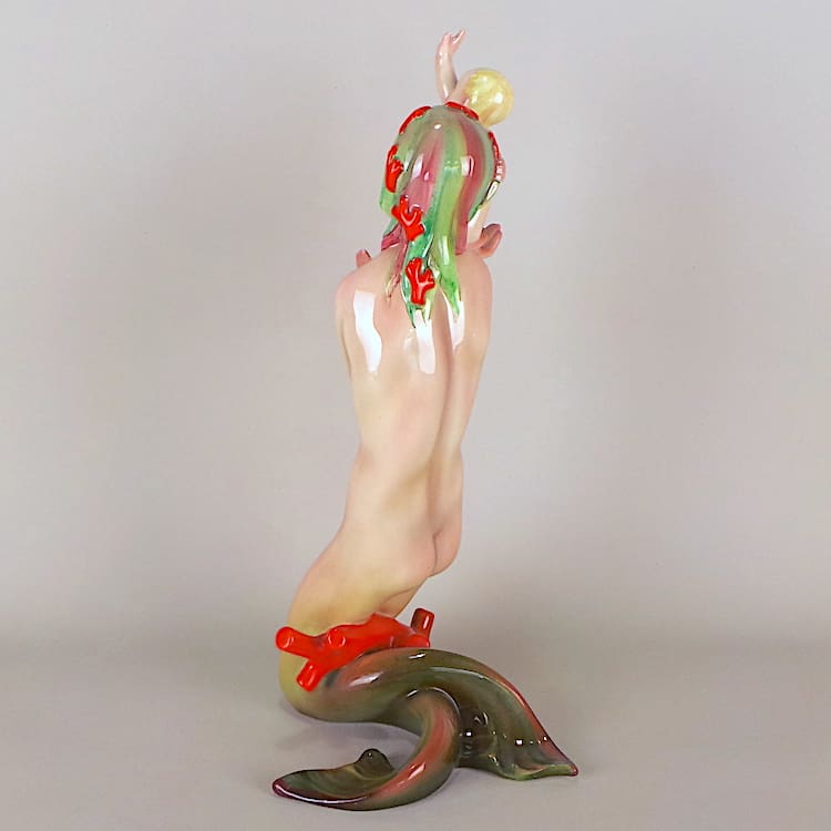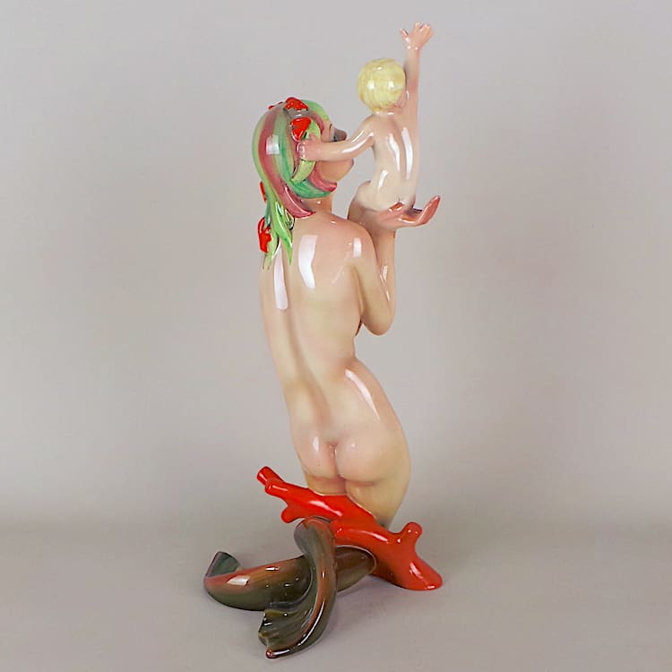 Large Italian hand painted ceramic statue of a female mermaid and child.