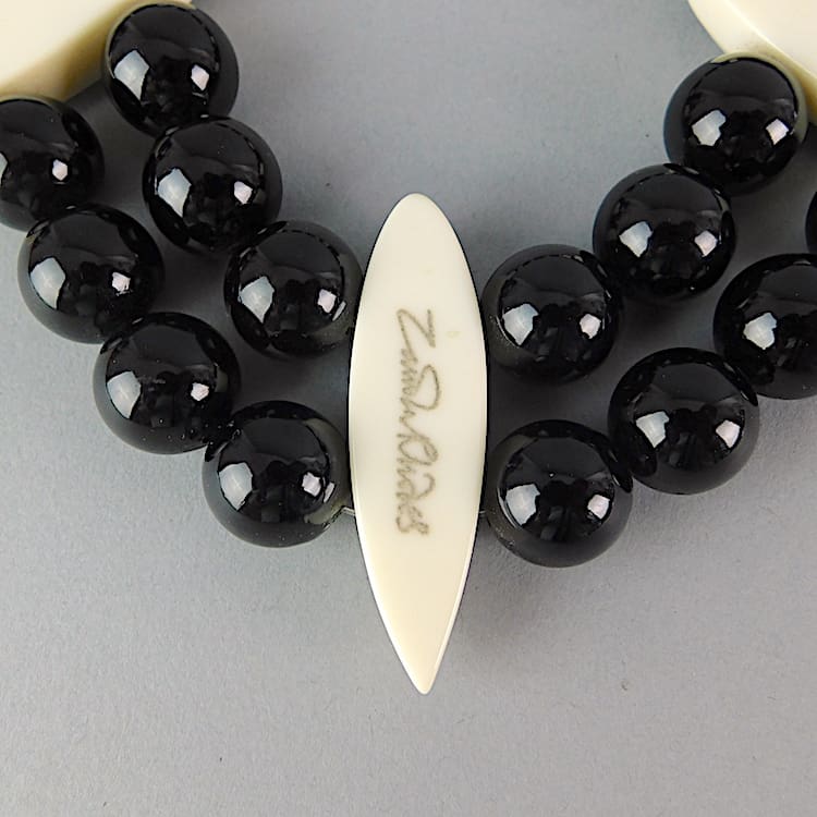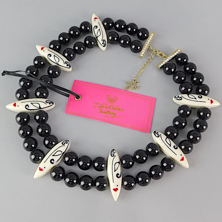 Multi hand painted faces and bead necklace, signed Zandra Rhodes. No longer in production and comes with its original ZR tag. I also have matching earrings and bangle to this item – available separately.