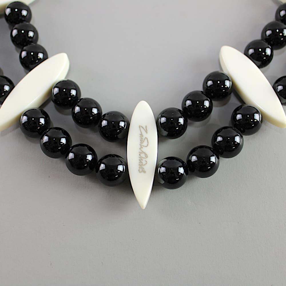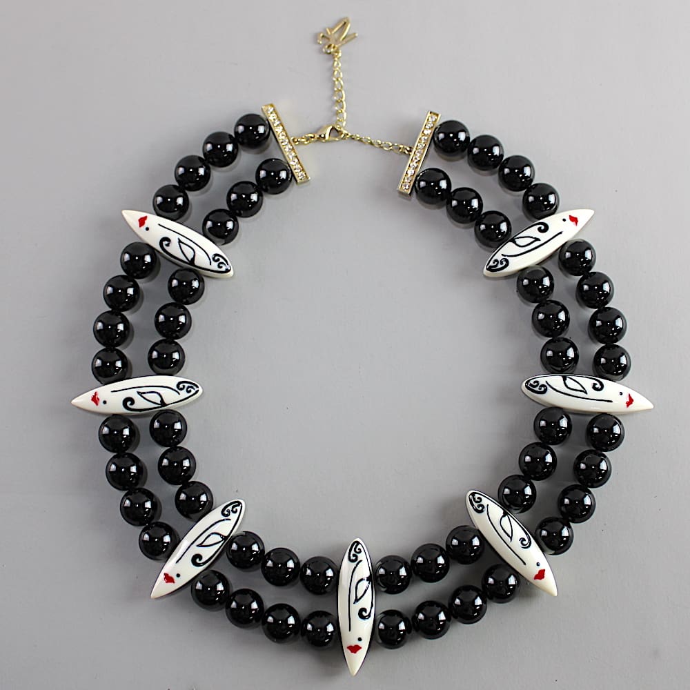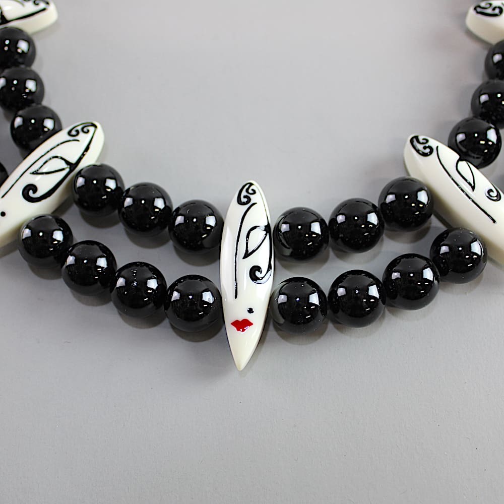 Multi hand painted faces and bead necklace, signed Zandra Rhodes.