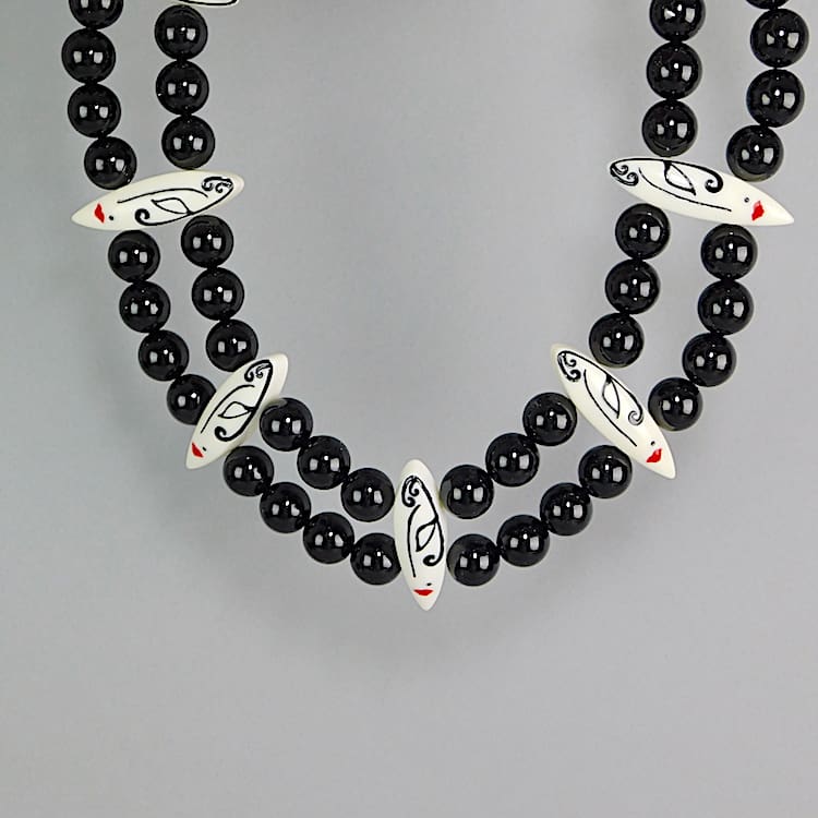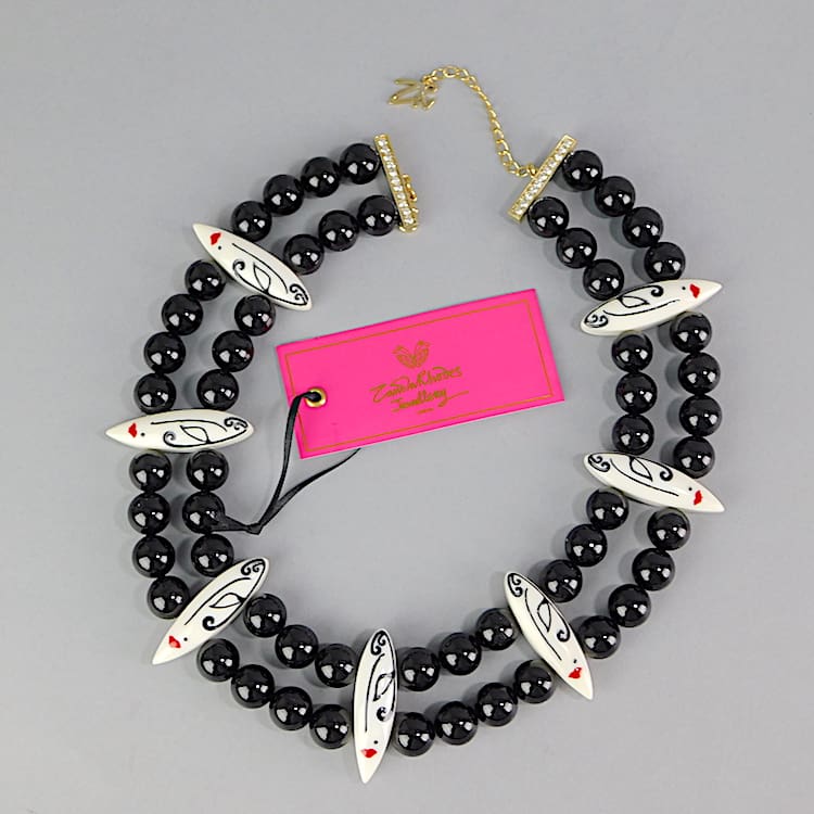 Multi hand painted faces and bead necklace, signed Zandra Rhodes. No longer in production and comes with its original ZR tag. I also have matching earrings and bangle to this item – available separately.