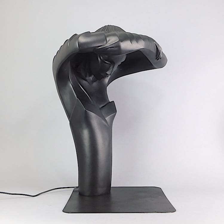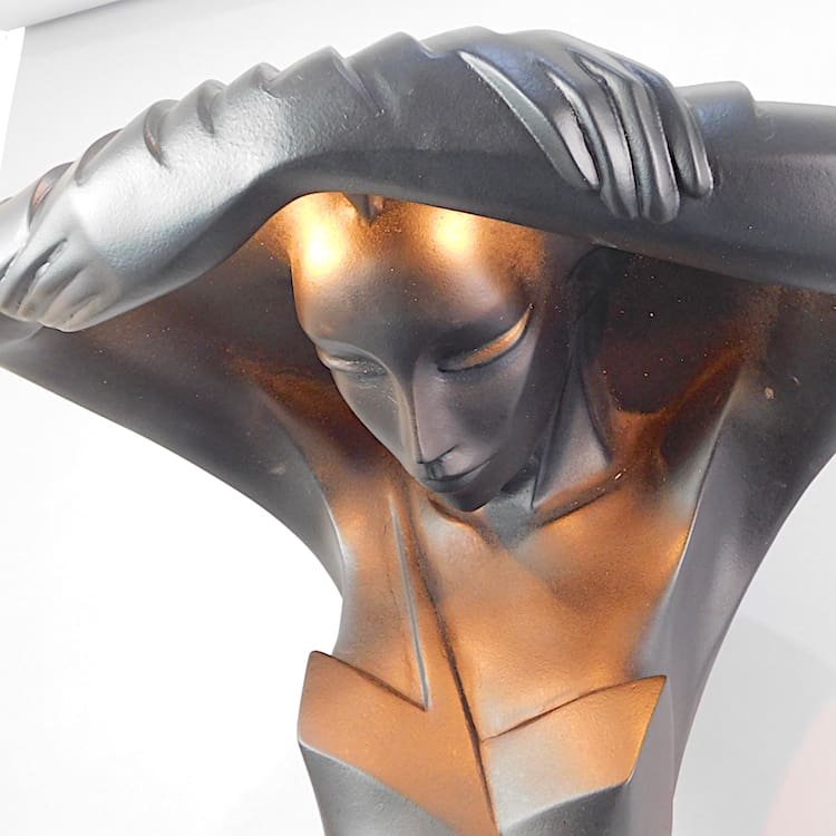 Large and rare Mantis neoplastic lady lamp designed and made by Lindsey B. Signed and dated 1984 to the reverse. This lamp is one of three that I was lucky to be able to buy recently directly from Lindsey B. She was moving from her studio workshop and I cleared the basement. I can give a certificate of authenticity signed by Lindsey and myself.
