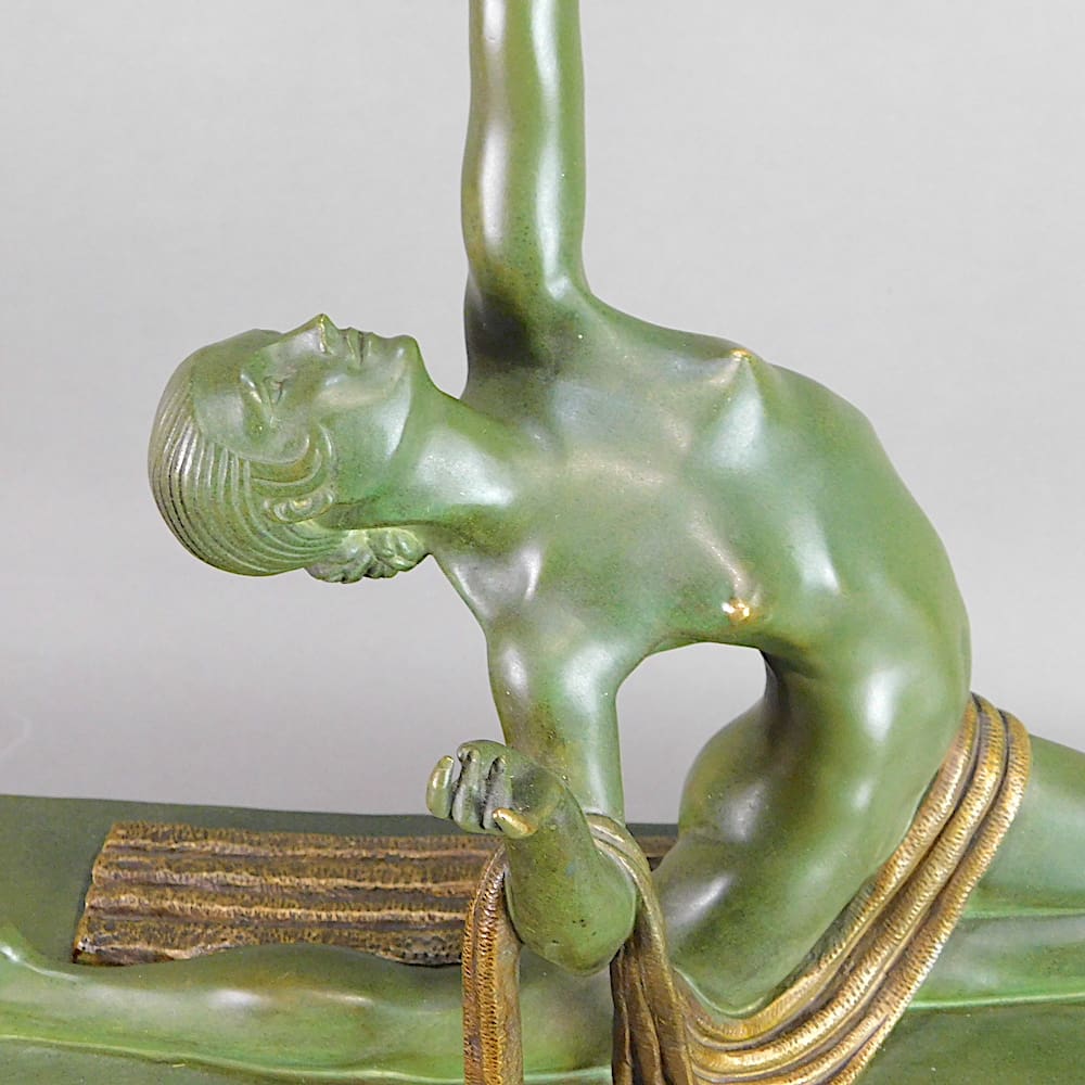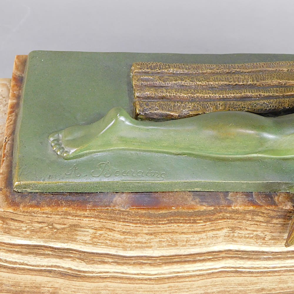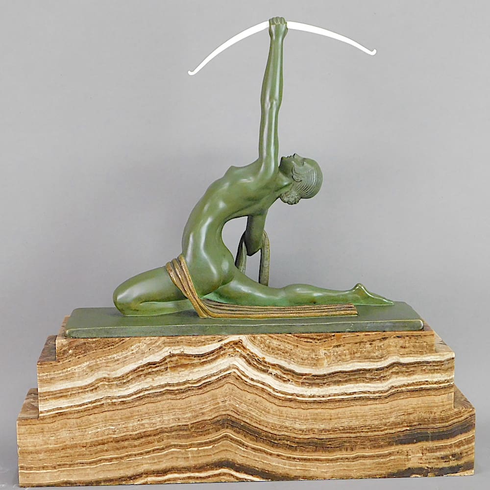French art deco green patinated bronze Diane with ivory bow by Marcel Andre Bouraine.