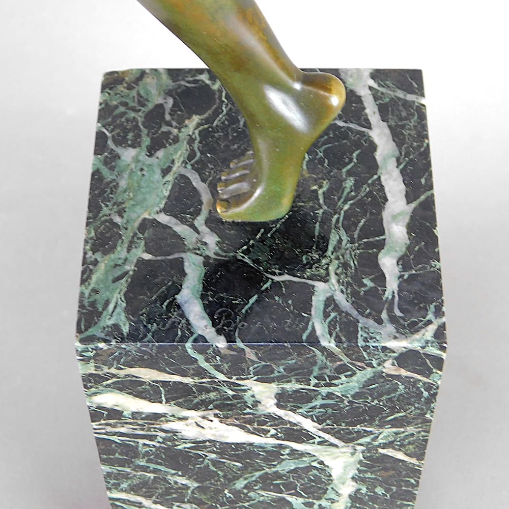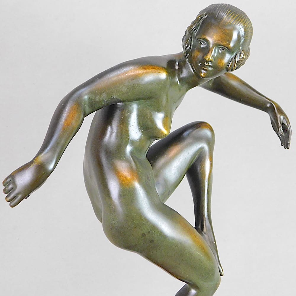 Bronze art deco dancer with a dark green-bronze patina produced at the Etling Foundry.