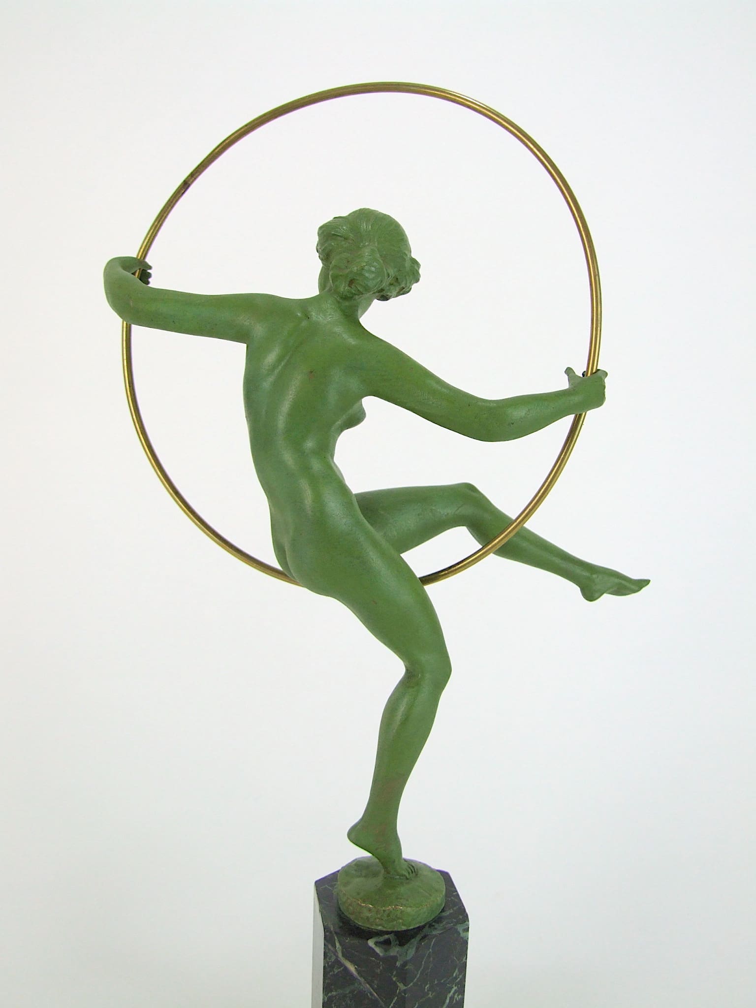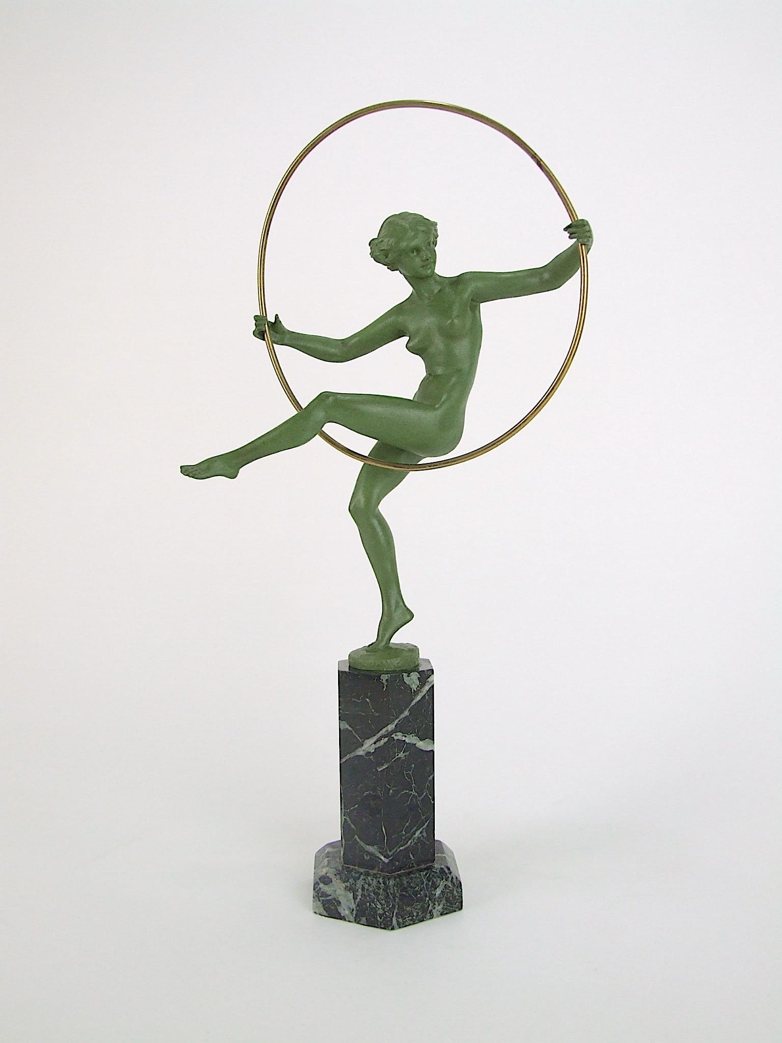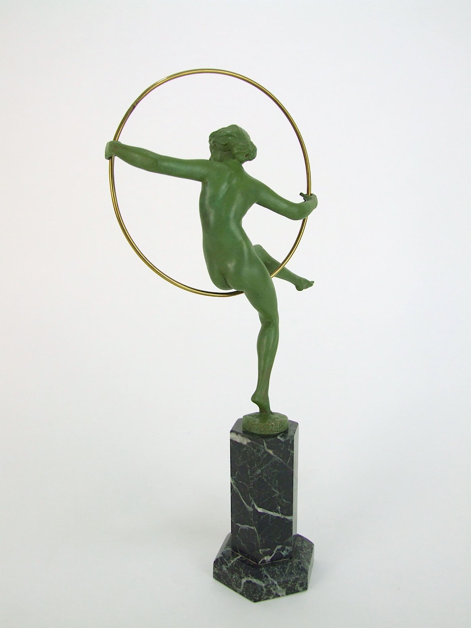 French art deco bronze hoop dancer statue by Marcel Bouraine, signed Briand (a pseudonym used by Bouraine).