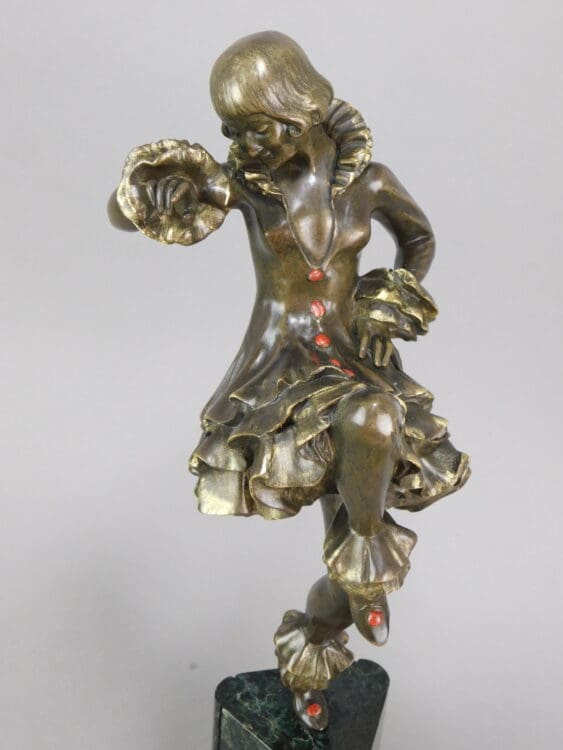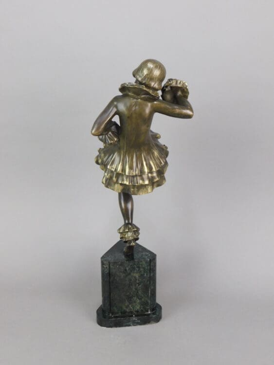 Colombine bronze dancer, a signed piece by Marcel Bouraine signed in his pseudonym Derenne. Made by the Le Verrier foundry in the 1920s.