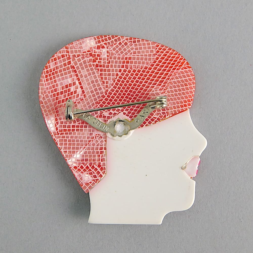 This is the first edition art deco lady (Marcelle) brooch. Signed on the V clasp.